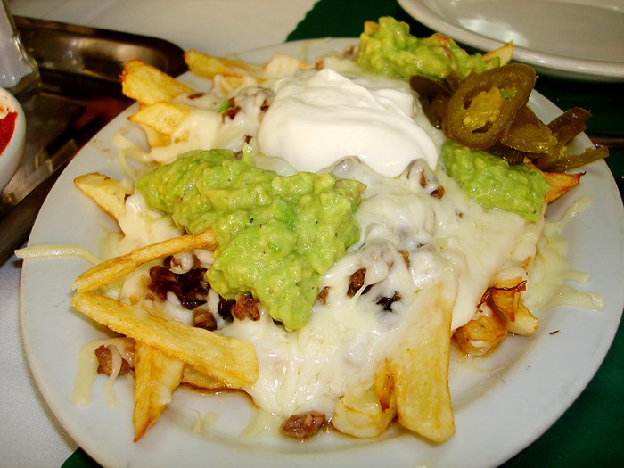 French fries, choice of meat, cheese, sour cream, guacamole & hot salsa